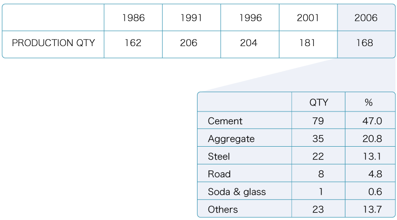There are only another 5,000 million tons of Limestone remaining, and it is going to short within 30 years and then we shall depend on importing from overseas. It shall be important and necessary things to develop new raw materials and utilise Returned concrete.